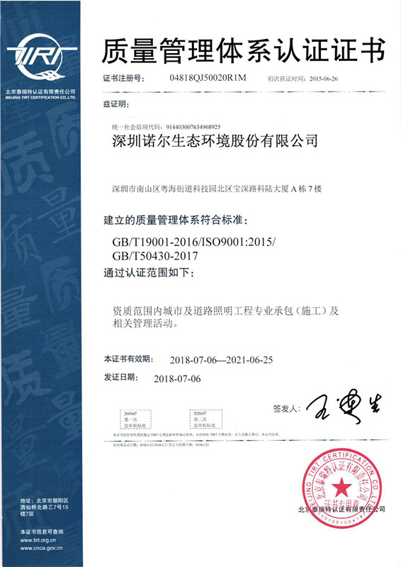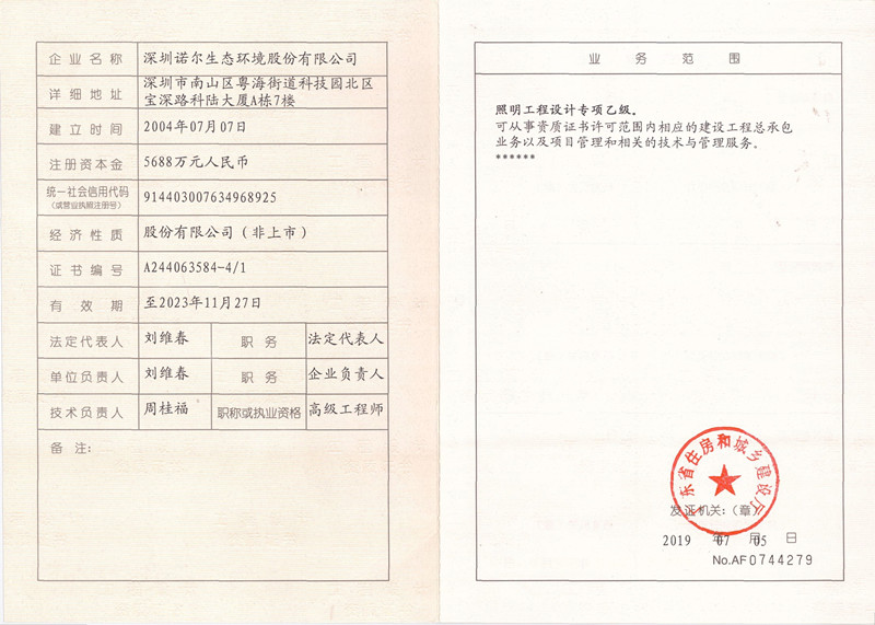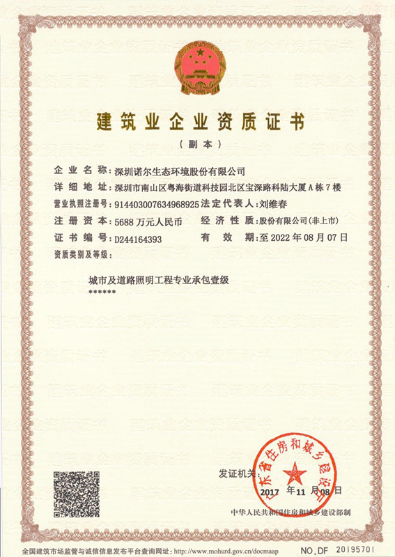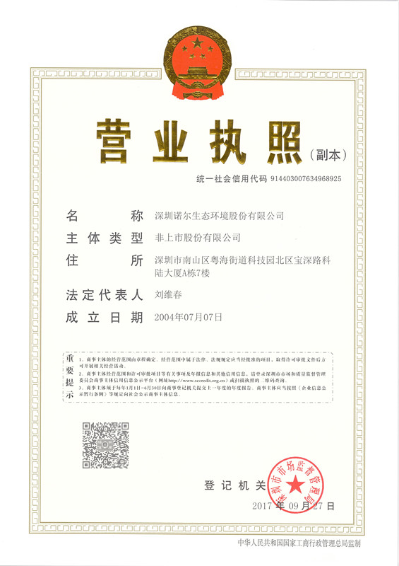 深圳诺尔生态环境股份有限公司成立于二OO 四年,总部位于科技园北区,旗下业务板块涉及园林景观、市政工程、城市照明、装饰、投资运营等综合类业务,是一家多元化发展的集团公司。